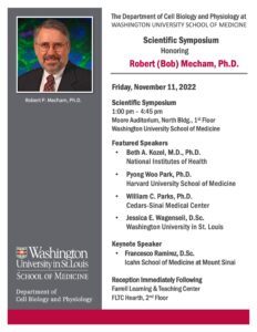 November 11, 2022 Cell Biology recently convened to honor the career Dr. Robert (Bob) Mecham with a Scientific Symposium on Extracellular Matrix with presentations from Dr. Beth Kozel (NIH), Dr. Pyong Park (Harvard Medical School), Dr. William Parks (Cedars-Sinai Medical Center), Dr. Jessica Wagenseil (WUSM), and a keynote presentation from Dr. Francesco Ramirez (Icahn School […]