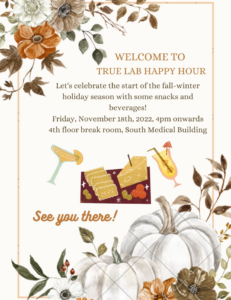 Join us for Happy Hour hosted by the True Lab! Friday, November 18th at 4:00 PM in the fourth floor South Building break room!